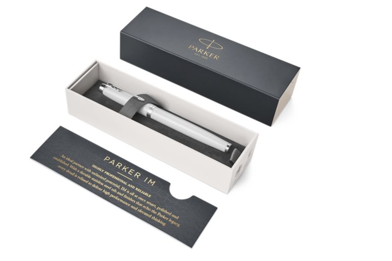 Ручка роллер Parker IM Metal White CT от официального дилера Parker в Бишкеке. Вы можете дополнительно заказать гравировку, которая подчеркнет Вашу оригинальность и придаст памятность статусному подарку. Все ручки Паркер поставляются в фирменном футляре.